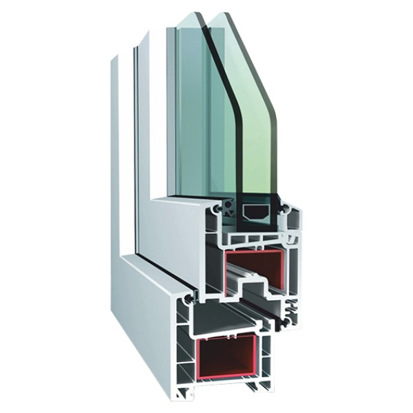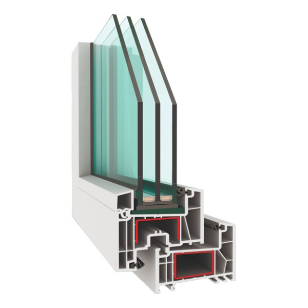 Трёхкамерная профильная система с монтажной шириной 58 мм, классического дизайна и глянцевой поверхностью.