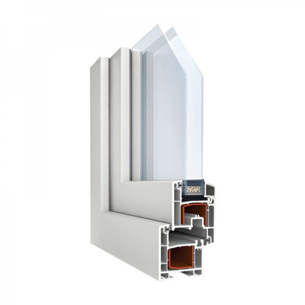 Трёхкамерная профильная система с монтажной шириной 58 мм, классического дизайна и глянцевой поверхностью.